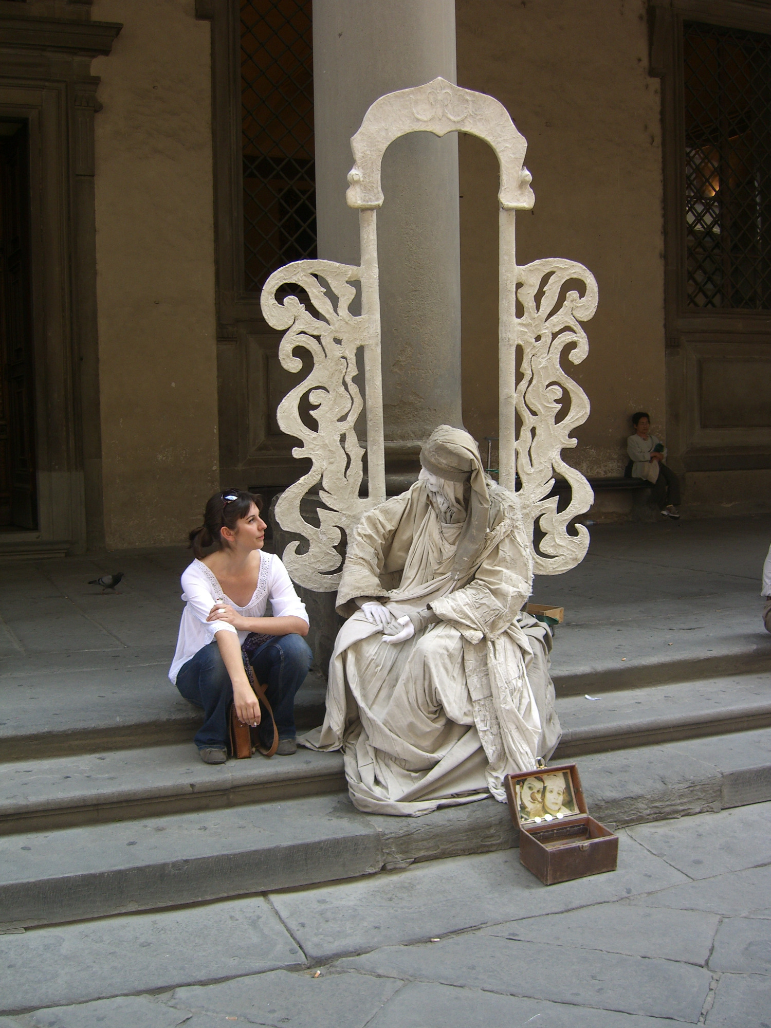 Hinter den Uffizien in Florenz stehen auch "menschliche Statuen". Aber auch die brauchen mal eine Pause.